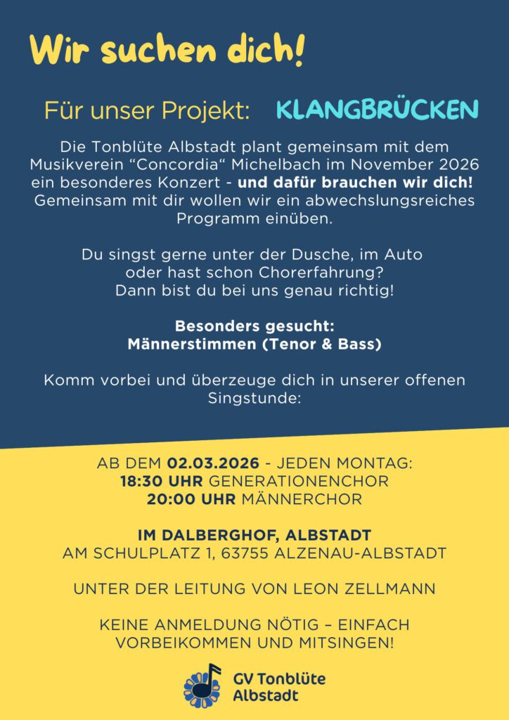 Als einer der ältesten und traditionsreichsten Vereine Alzenaus kann der Gesangverein Tonblüte Albstadt 1883 e.V. auf eine mehr als 140-jährige Vereinsgeschichte zurückblicken.